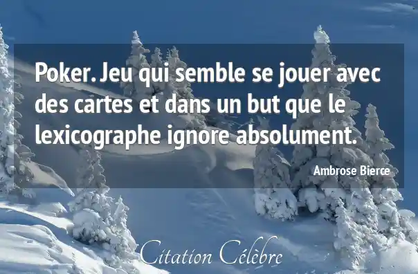 Poker. Jeu qui semble se jouer avec des cartes et dans un but que le lexicographe ignore absolument.