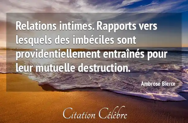 Relations intimes. Rapports vers lesquels des imbéciles sont providentiellement entraînés pour leur mutuelle destruction.