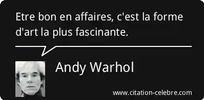 Etre bon en affaires, c'est la forme d'art la plus fascinante.