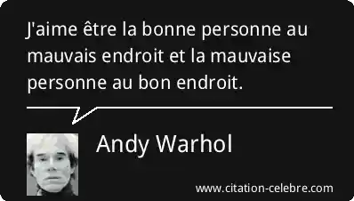 - La critique de l'establishment et des conventions : Warhol, figure du Pop Art, remet en question les critères rigides qui définissent le "bon" et le "mauvais" endroit, ainsi que la "bonne" et la "mauvaise" personne. Il rejette l'idée qu'il faille s'intégrer parfaitement pour être pertinent.