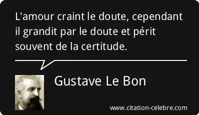 L'amour craint le doute, cependant il grandit par le doute et périt souvent de la certitude.