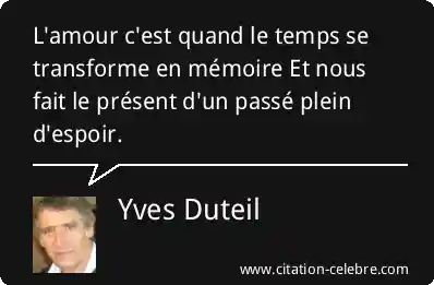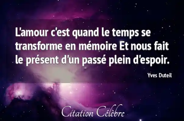 L'amour c'est quand le temps se transforme en mémoire Et nous fait le présent d'un passé plein d'espoir.