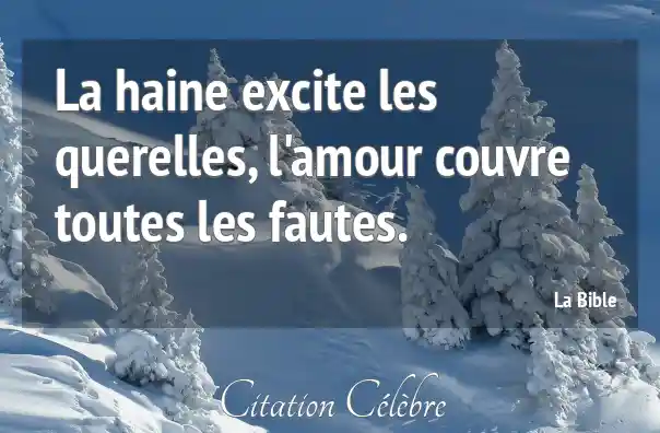 La haine excite les querelles, l'amour couvre toutes les fautes.