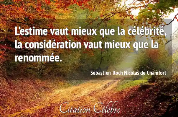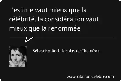L'estime vaut mieux que la célébrité, la considération vaut mieux que la renommée.