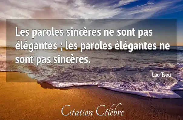 Les paroles sincères ne sont pas élégantes ; les paroles élégantes ne sont pas sincères.