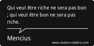Qui veut être riche ne sera pas bon ; qui veut être bon ne sera pas riche.