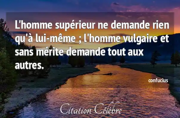 L'homme supérieur ne demande rien qu'à lui-même ; l'homme vulgaire et sans mérite demande tout aux autres.
