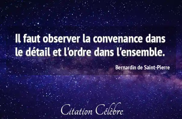 Il faut observer la convenance dans le détail et l'ordre dans l'ensemble.