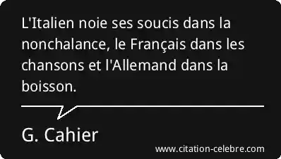 L'Italien noie ses soucis dans la nonchalance, le Français dans les chansons et l'Allemand dans la boisson.