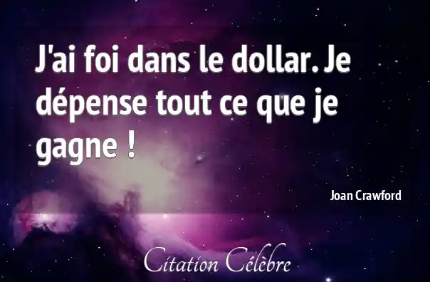 J'ai foi dans le dollar. Je dépense tout ce que je gagne !