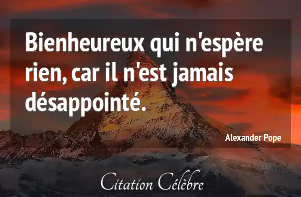 Bienheureux qui n'espère rien, car il n'est jamais désappointé.