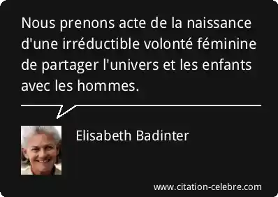 Nous prenons acte de la naissance d'une irréductible volonté féminine de partager l'univers et les enfants avec les hommes.