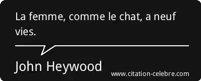 Citation John Heywood femme : La femme, comme le chat, a neuf vies....