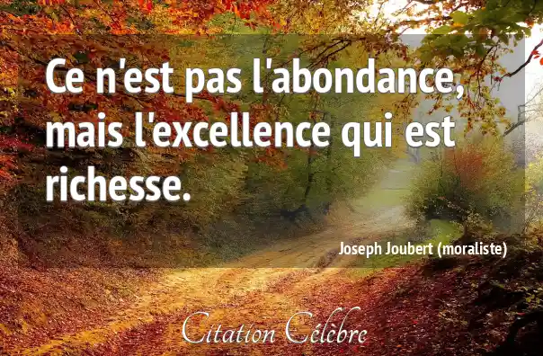 Ce n'est pas l'abondance, mais l'excellence qui est richesse.
