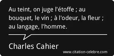 Au teint, on juge l'étoffe ; au bouquet, le vin ; à l'odeur, la fleur ; au langage, l'homme.