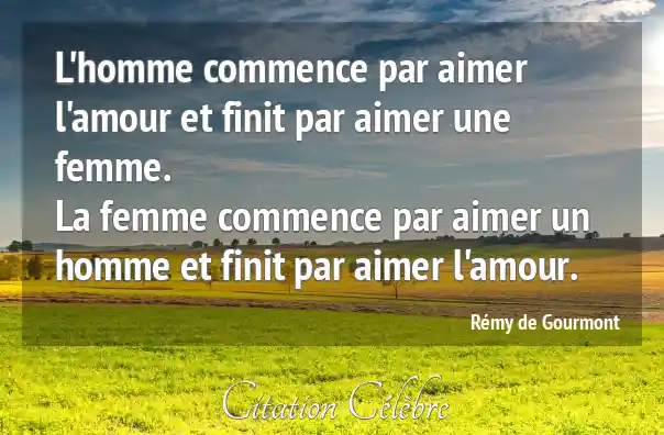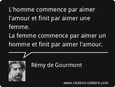 L'homme commence par aimer l'amour et finit par aimer une femme. La femme commence par aimer un homme et finit par aimer l'amour.