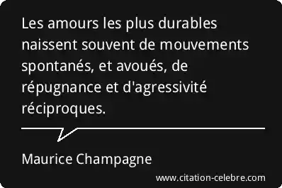 Les amours les plus durables naissent souvent de mouvements spontanés, et avoués, de répugnance et d'agressivité réciproques.