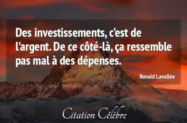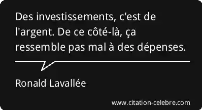 Des investissements, c'est de l'argent. De ce côté-là, ça ressemble pas mal à des dépenses.