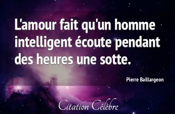 L'amour fait qu'un homme intelligent écoute pendant des heures une sotte.