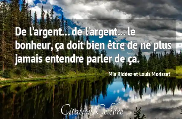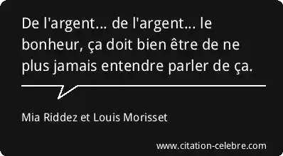 De l'argent... de l'argent... le bonheur, ça doit bien être de ne plus jamais entendre parler de ça.