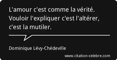 L'amour c'est comme la vérité. Vouloir l'expliquer c'est l'altérer, c'est la mutiler.