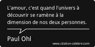 L'amour, c'est quand l'univers à découvrir se ramène à la dimension de nos deux personnes.