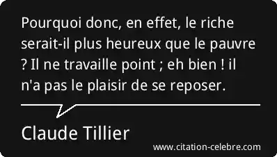 Pourquoi donc, en effet, le riche serait-il plus heureux que le pauvre ? Il ne travaille point ; eh bien ! il n'a pas le plaisir de se reposer.
