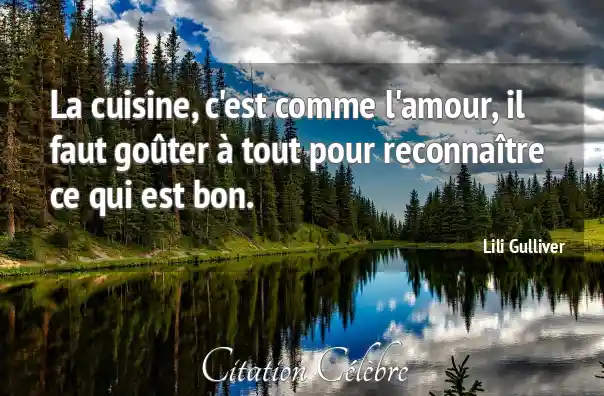 La cuisine, c'est comme l'amour, il faut goûter à tout pour reconnaître ce qui est bon.