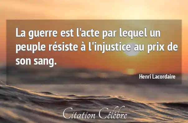 La guerre est l'acte par lequel un peuple résiste à l'injustice au prix de son sang.