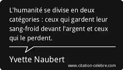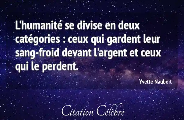 L'humanité se divise en deux catégories : ceux qui gardent leur sang-froid devant l'argent et ceux qui le perdent.