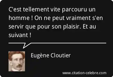 C'est tellement vite parcouru un homme ! On ne peut vraiment s'en servir que pour son plaisir. Et au suivant !