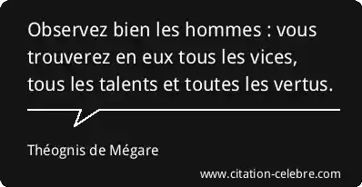 Observez bien les hommes : vous trouverez en eux tous les vices, tous les talents et toutes les vertus.