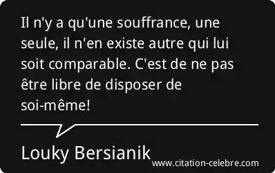 Il n'y a qu'une souffrance, une seule, il n'en existe autre qui lui soit comparable. C'est de ne pas être libre de disposer de soi-même!
