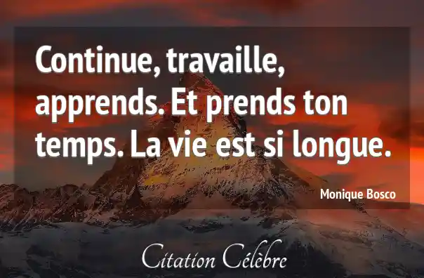 Continue, travaille, apprends. Et prends ton temps. La vie est si longue.