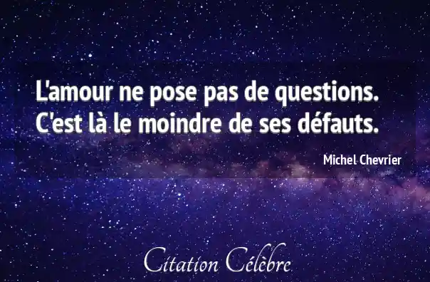 L'amour ne pose pas de questions. C'est là le moindre de ses défauts.