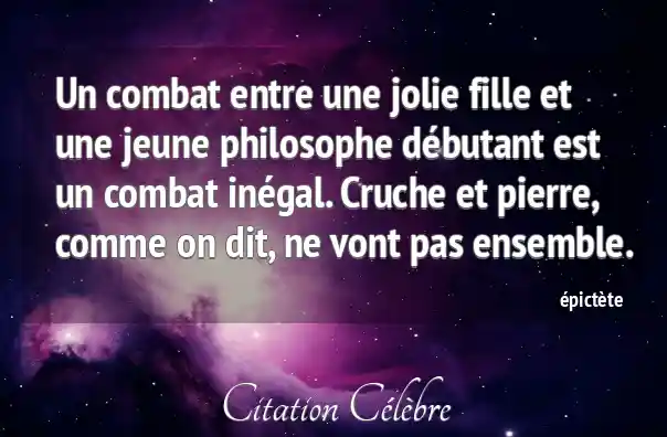 Un combat entre une jolie fille et une jeune philosophe débutant est un combat inégal. Cruche et pierre, comme on dit, ne vont pas ensemble.