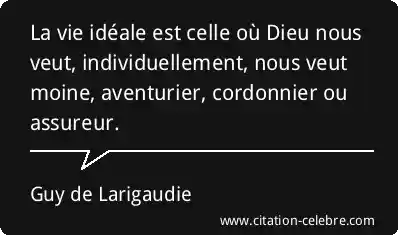 La vie idéale est celle où Dieu nous veut, individuellement, nous veut moine, aventurier, cordonnier ou assureur.
