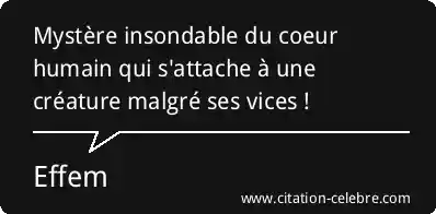 Mystère insondable du coeur humain qui s'attache à une créature malgré ses vices !