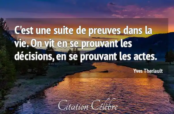 C'est une suite de preuves dans la vie. On vit en se prouvant les décisions, en se prouvant les actes.