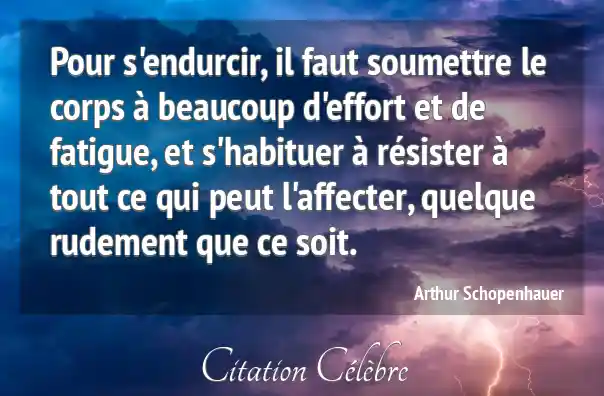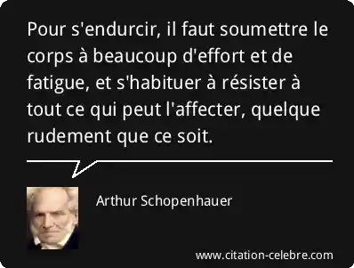 Pour s'endurcir, il faut soumettre le corps à beaucoup d'effort et de fatigue, et s'habituer à résister à tout ce qui peut l'affecter, quelque rudement que ce soit.