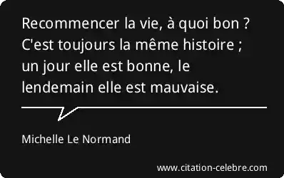 Citation Michelle Le Normand vie : Recommencer la vie, à quoi bon ? C'est toujours la...