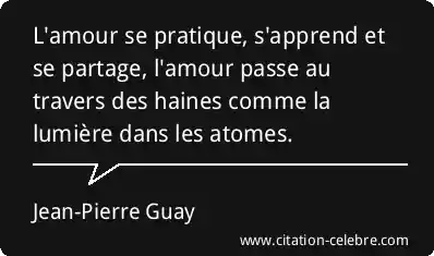 L'amour se pratique, s'apprend et se partage, l'amour passe au travers des haines comme la lumière dans les atomes.