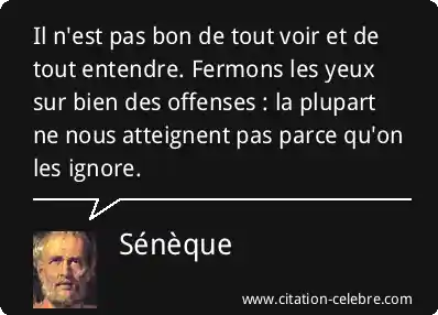 Il n'est pas bon de tout voir et de tout entendre. Fermons les yeux sur bien des offenses : la plupart ne nous atteignent pas parce qu'on les ignore.