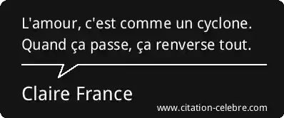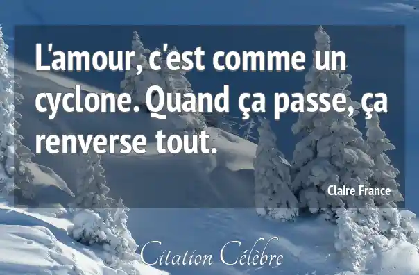 L'amour, c'est comme un cyclone. Quand ça passe, ça renverse tout.