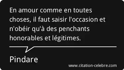 En amour comme en toutes choses, il faut saisir l'occasion et n'obéir qu'à des penchants honorables et légitimes.