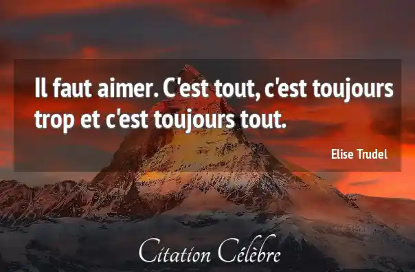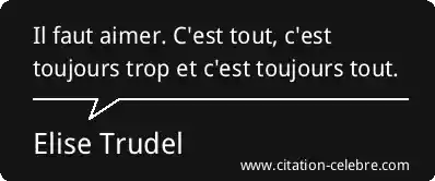 Il faut aimer. C'est tout, c'est toujours trop et c'est toujours tout.