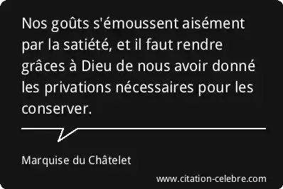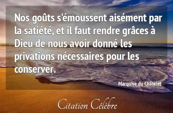 Nos goûts s'émoussent aisément par la satiété, et il faut rendre grâces à Dieu de nous avoir donné les privations nécessaires pour les conserver.