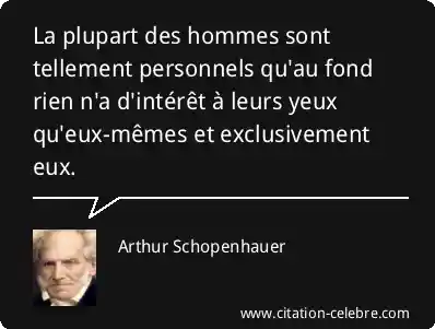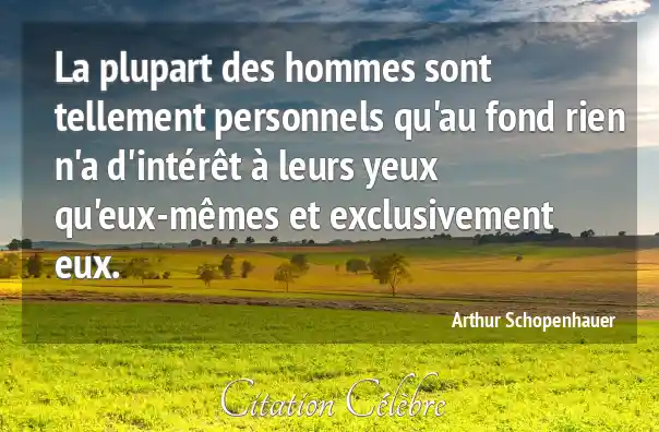 La plupart des hommes sont tellement personnels qu'au fond rien n'a d'intérêt à leurs yeux qu'eux-mêmes et exclusivement eux.