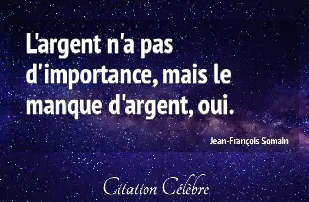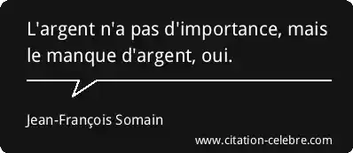 L'argent n'a pas d'importance, mais le manque d'argent, oui.