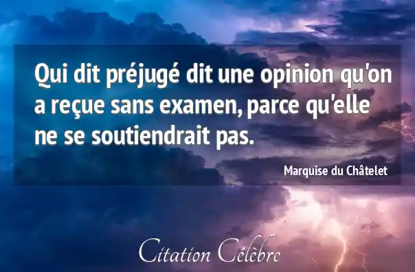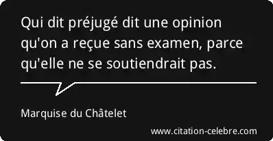 Citation Marquise du Châtelet dit : Qui dit préjugé dit une opinion qu'on a reçue sans...